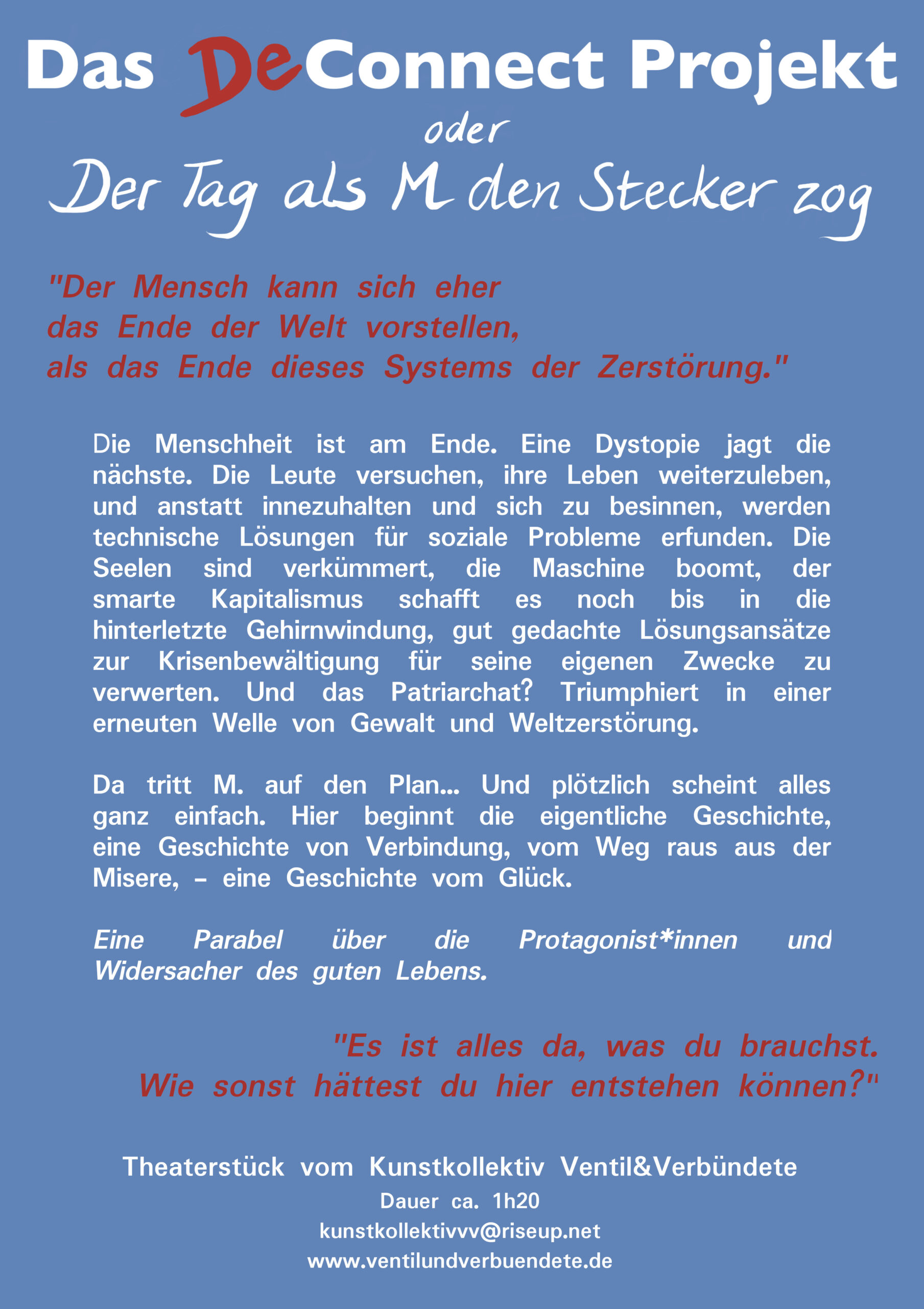 Theaterstück für 2 Personen. Dauer ca. 1 Stunde.